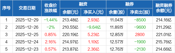 中际旭创:融资净买入2.93亿元,融资余额213.48亿元(12-29)