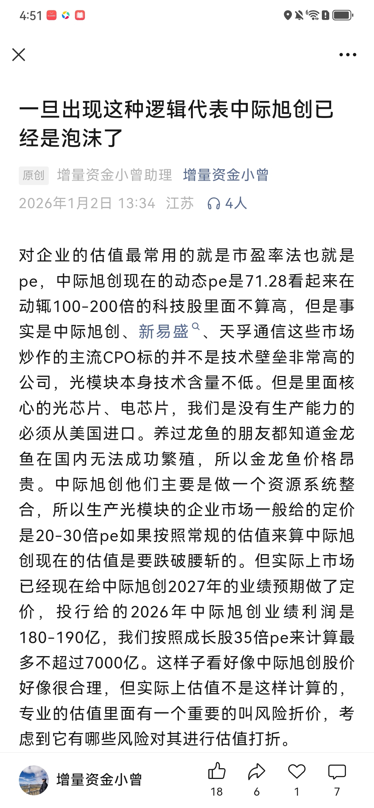 $中际旭创(SZ300308)$ 市值腰斩泡沫