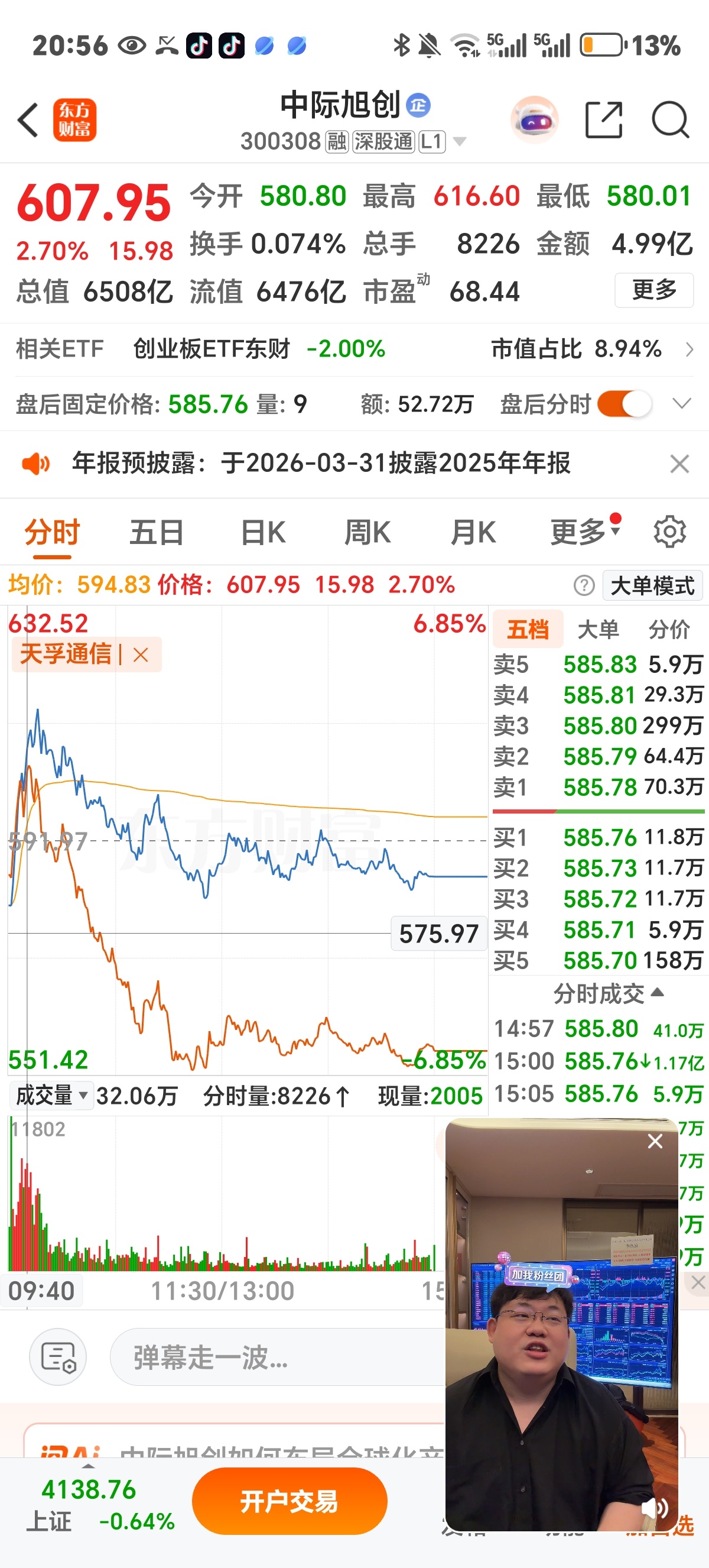 $中际旭创(SZ300308)$ 今天的叠线完全是被cpo小票带崩了