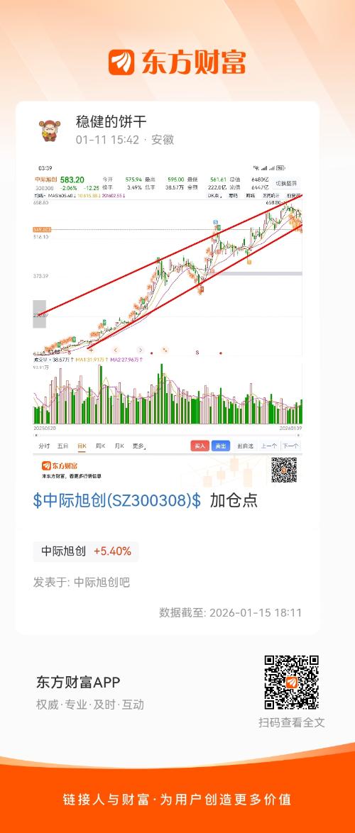 1.11就说这是加仓点,很多人不信,这个收敛三角形突破了就会有大行情,主升大行情,拿着别动,回调就加仓,这么好的票,业绩产品供应链预期都这么好,哪里找,怎么可能大跌,低位就加仓没有任何问题!今天龙头归位,在里面的吃肉吧,好票不套人!要有认知,拿的住!中际不会辜负你!年报行情还会涨!