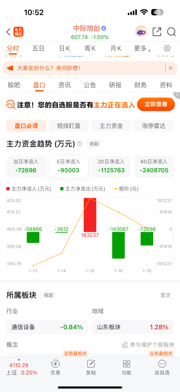 $中际旭创(SZ300308)$ 一上午不到,流出7个亿了