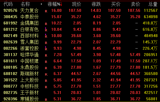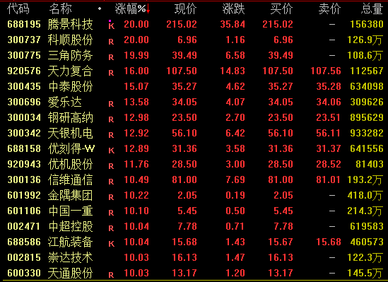 全市场近3600股飘红,小盘股整体活跃。商业航天概念卷土重来,腾景科技尾盘涨停创历史新高,三角防务、广合科技等均涨停;可控核聚变概念拉升,雪人集团、浙富控股等涨停,哈焊华通涨超7%;石油、燃气、煤炭等资源股集体上扬,洲际油气、蓝焰控股、百通能源等涨停。CPO概念再度活跃,光模块“三剑客”集体放量飙升,中际旭创(300308)涨近7%,全日成交242.7亿元,位居A股成交额首位;新易盛、天孚通信分别上涨3.77%、5.96%,全日分别成交176.1亿元、100.2亿元。值得注意的是,近日连续5跌停的国晟科技午后直线拉升,上演“地天板”走势。