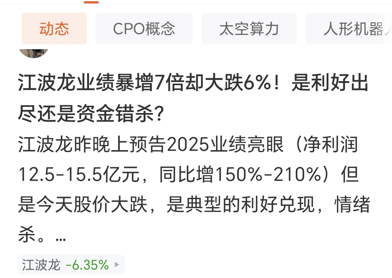 $中际旭创(SZ300308)$ 希望中际不要像江波,业绩暴增7倍却跌6%。