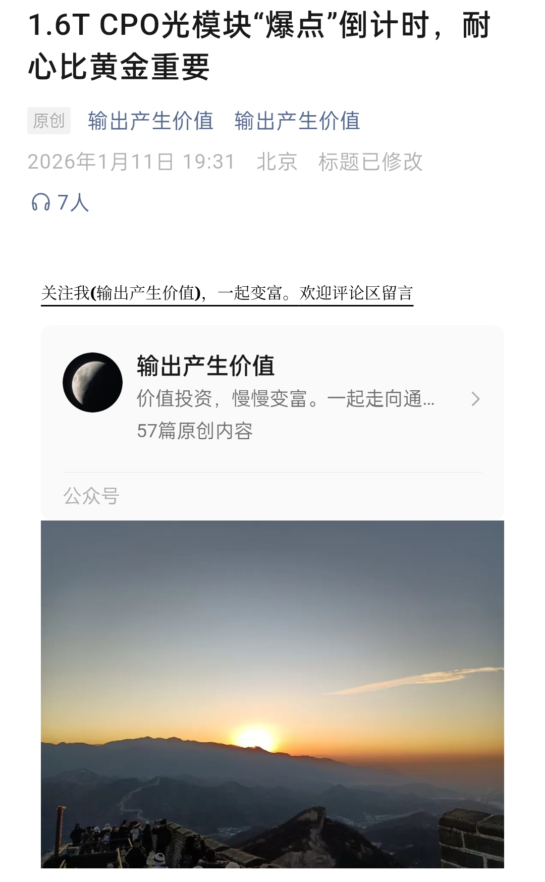 CPO光模块“爆点”倒计时!耐心,价值投资
