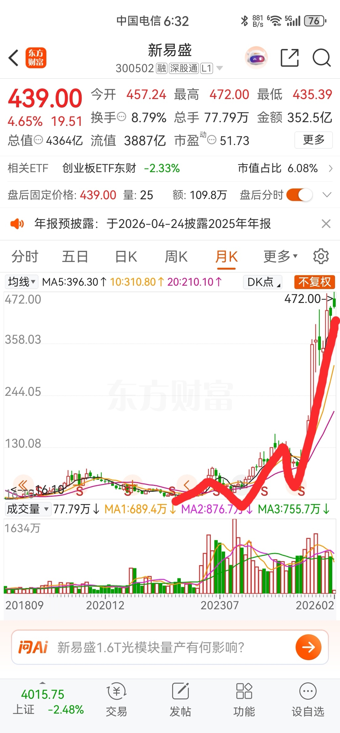 今天中际放天量大跌,千年大顶,谁敢买?