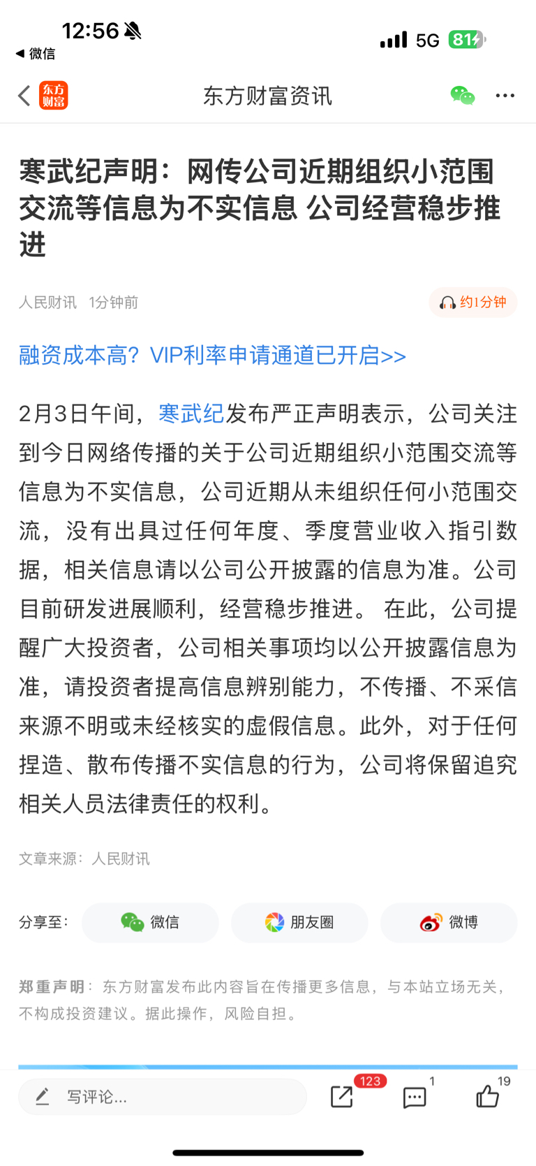 寒武纪辟谣了下午会不会带领科技回升啊