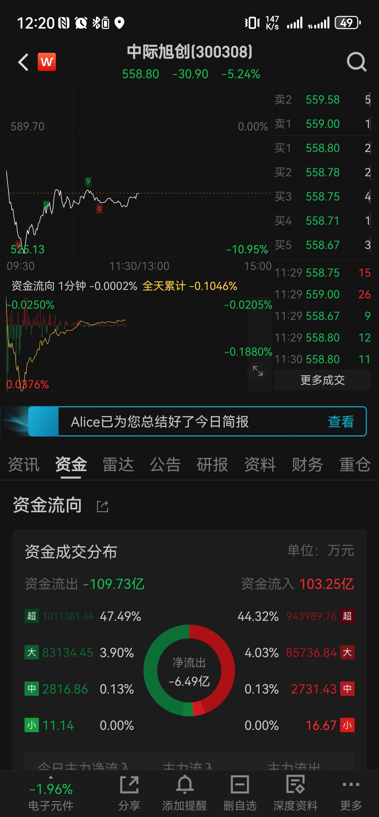 $中际旭创(SZ300308)$ 今天的主力资金博弈,刺激了点。。。