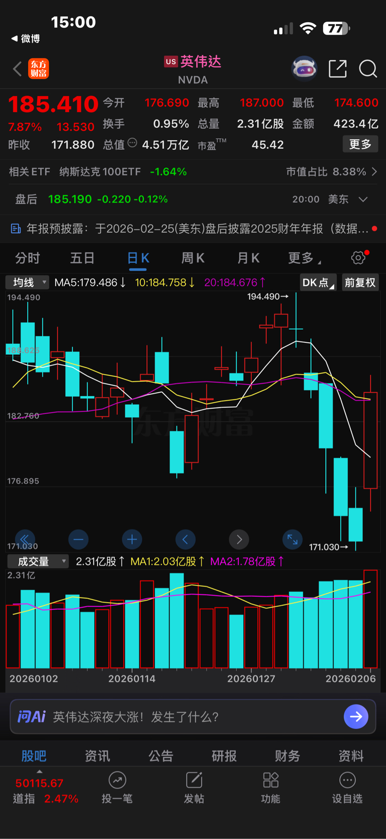 下周一将会大幅上升,因为英伟达昨晚上一阳穿三阴