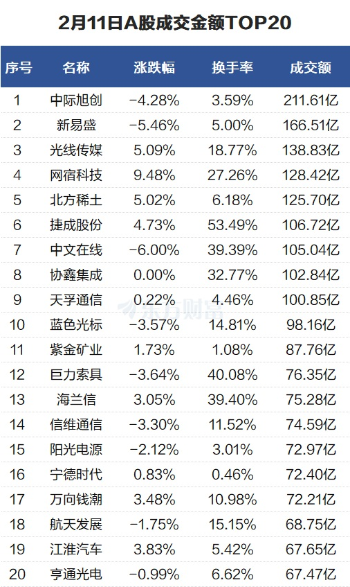 沪深两市成交额1.98万亿元,较上一交易日缩量1213亿元。个股方面,中际旭创当日成交211.61亿元。新易盛当日成交166.51亿元。