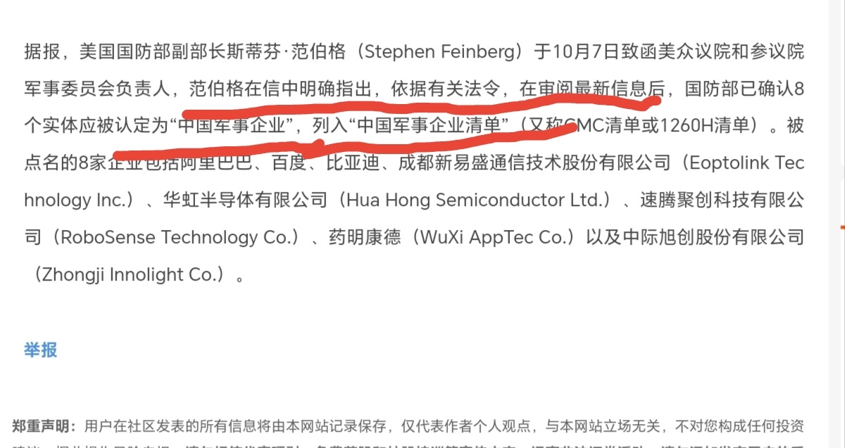 10月7日提出8家公司纳入清单,11月27号外媒传过一次了,美gfb提议的纳入,基本上确认要上1260h清单的,