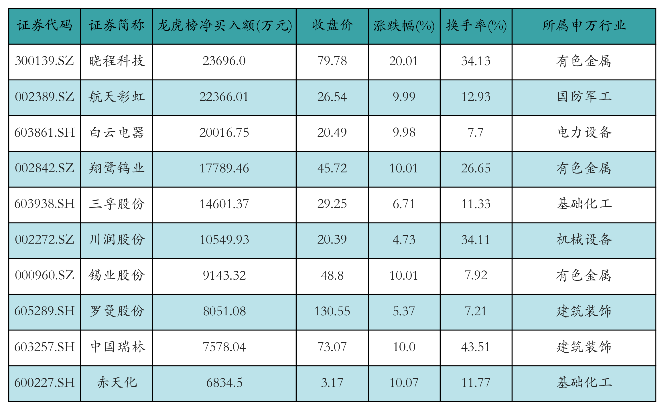 昨日龙虎榜营业部净买入额前10详情见下表: