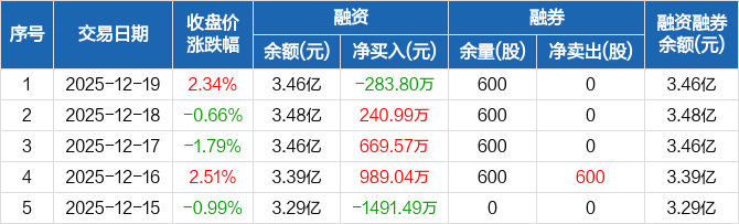 宜通世纪:融资净偿还283.8万元,融资余额3.46亿元(12-19)