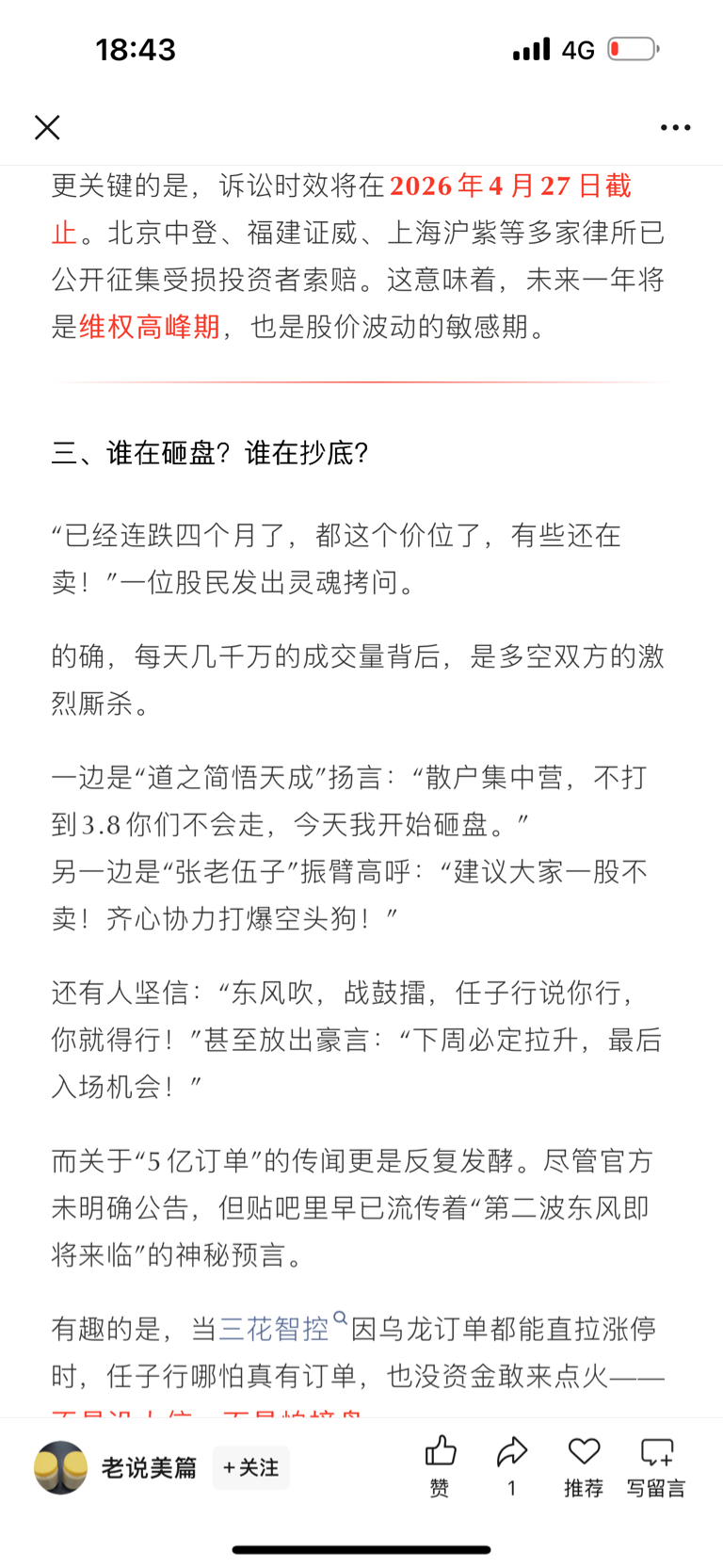 温馨提示: 1.根据《证券法》规定,禁止编造、传播虚假信息或者误导性信息,扰乱证券市场;2.用户在本社区发表的所有资料、言论等仅代表个人观点,与本网站立场无关,不对您构成任何投资建议。用户应基于自己的独立判断,自行决定证券投资并承担相应风险。《东方财富社区管理规定》