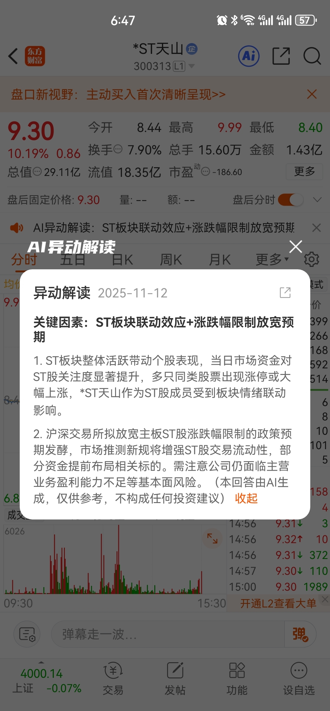 $*ST天山(SZ300313)$ 昙花一现,未有实质利好支持,恐走不远。