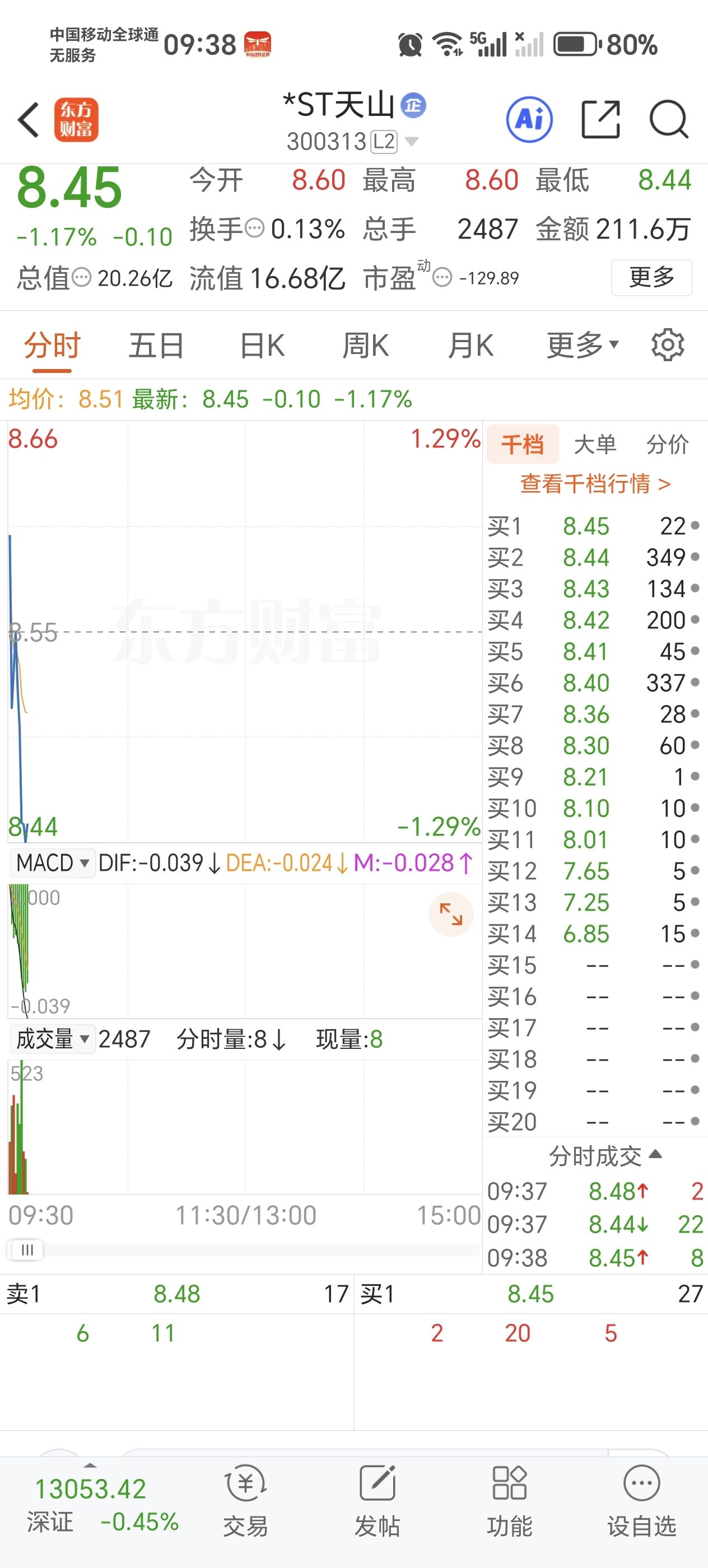 $*ST天山(SZ300313)$ 总共就这么点买单