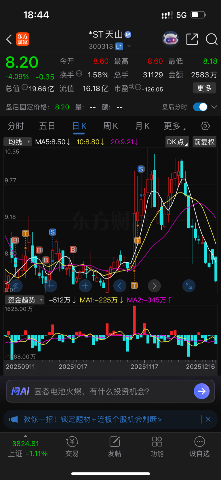 $*ST天山(SZ300313)$ 当时觉得卖飞了,看来又可以进了