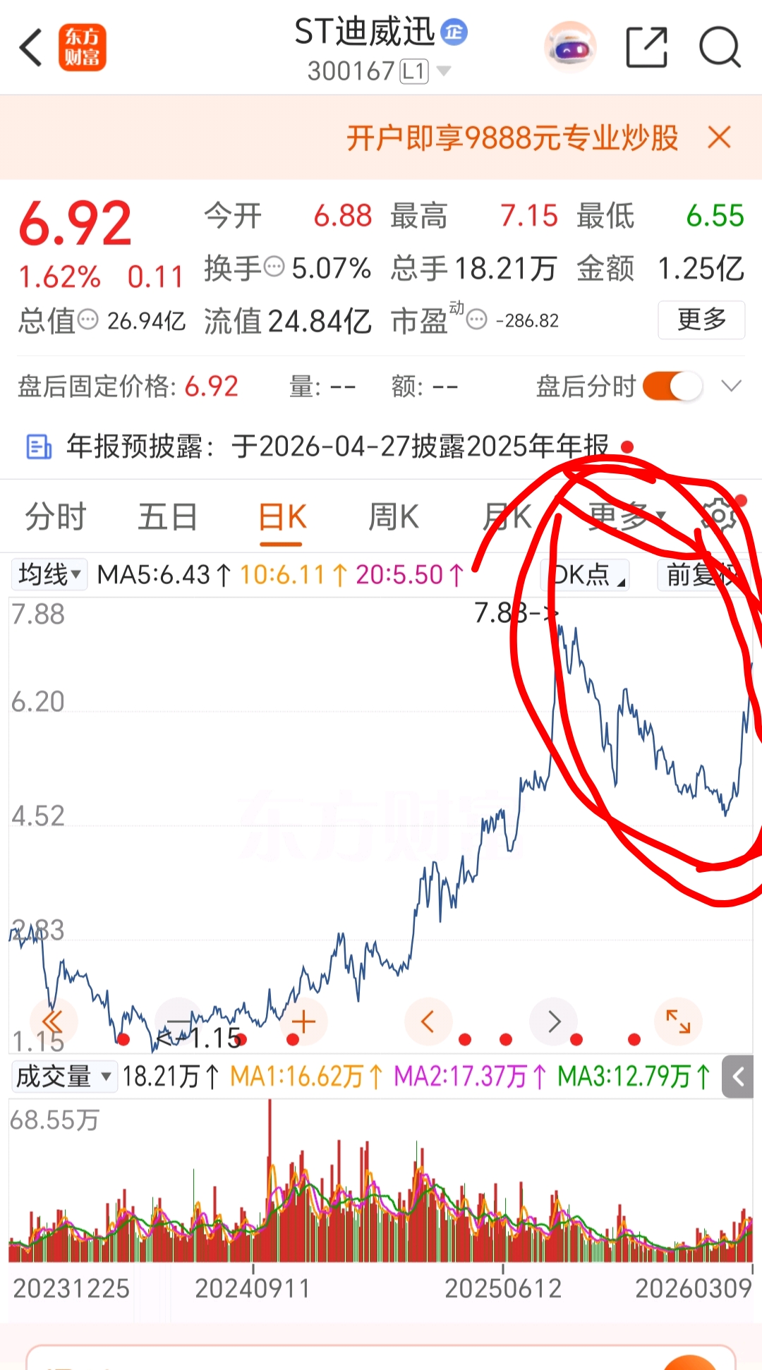 $*ST天山(SZ300313)$ 能不能像迪威讯一样走个这样趋势