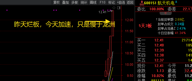 $航天机电(SH600151)$:早盘的低位先锋板是龙洲,牧风手慢了一点,没有扫到,所以次选了这票的扫板。不过盘前给的板块策略:1进2先锋和航天发展的抱团核心,是得到市场验证的。这个票也算弱转强走法,虽然地位稍差,但从模式角度是符合的。