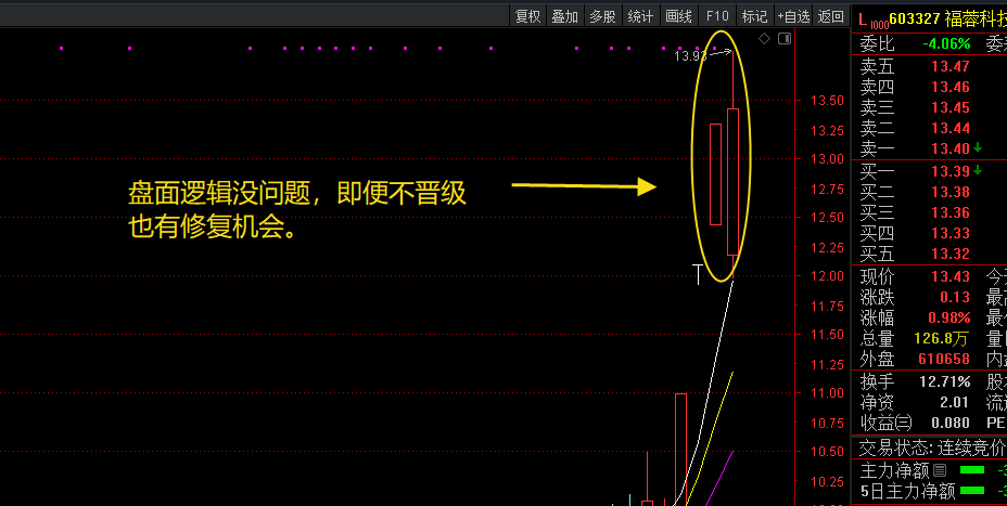 福蓉科技:这票怎么说呢?昨天和金富分离后回封上板,逻辑肯定是没问题的。今天-8%低开,一是因为AI手机彻底被抛弃了,二是道明光学一字跌停拖累。那么接受现实,牧风当时的目标尽量少亏。但开盘后,承接力还不错,随着道明被翘板,它有了冲红动作,从预期大亏到能喝汤,那还说啥,屁颠走人,有种做贼没被抓到的感觉,呵呵。