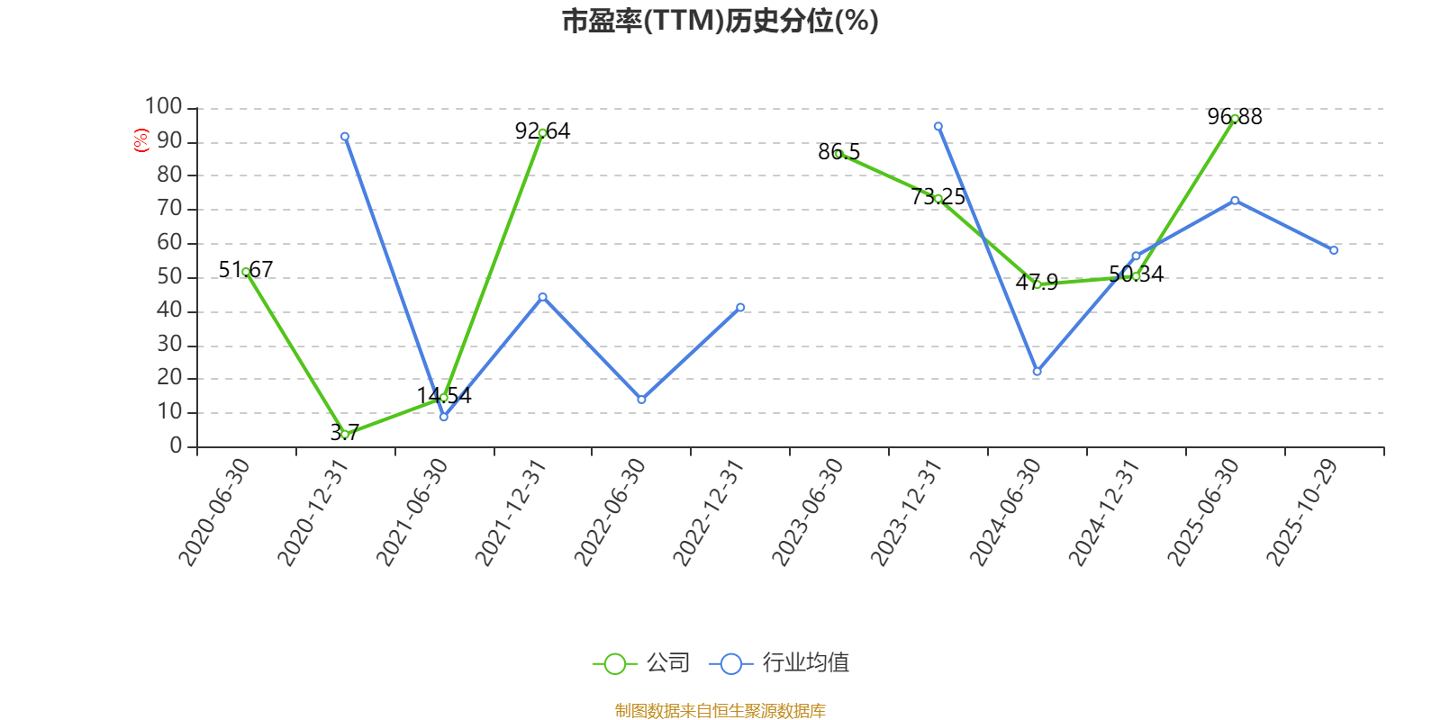 市盈率、市净率为负时,不显示当期分位数,会导致折线图中断。
