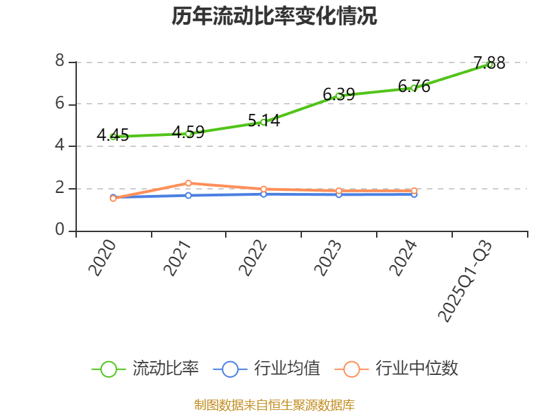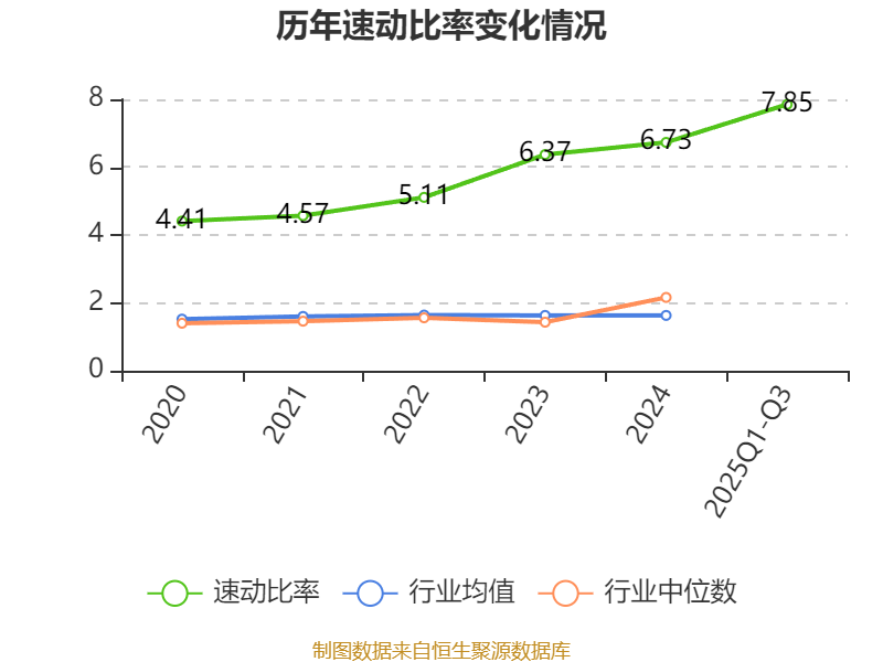 2025年前三季度,公司流动比率为7.88,速动比率为7.85。