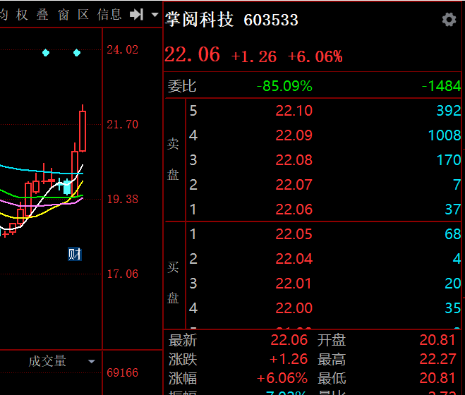 掌阅科技两天上涨13%,几天连续上涨从18元上涨到22元