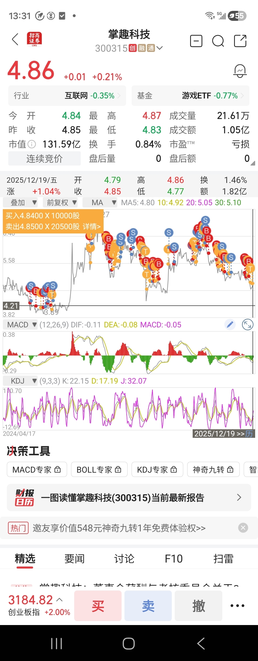 $掌趣科技(SZ300315)$ 对得起我吗?