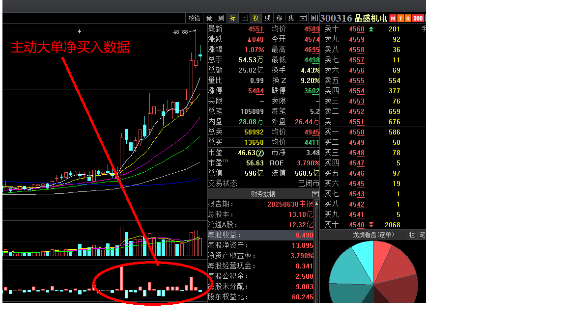 晶盛机电高精度主动大单净买入数据图