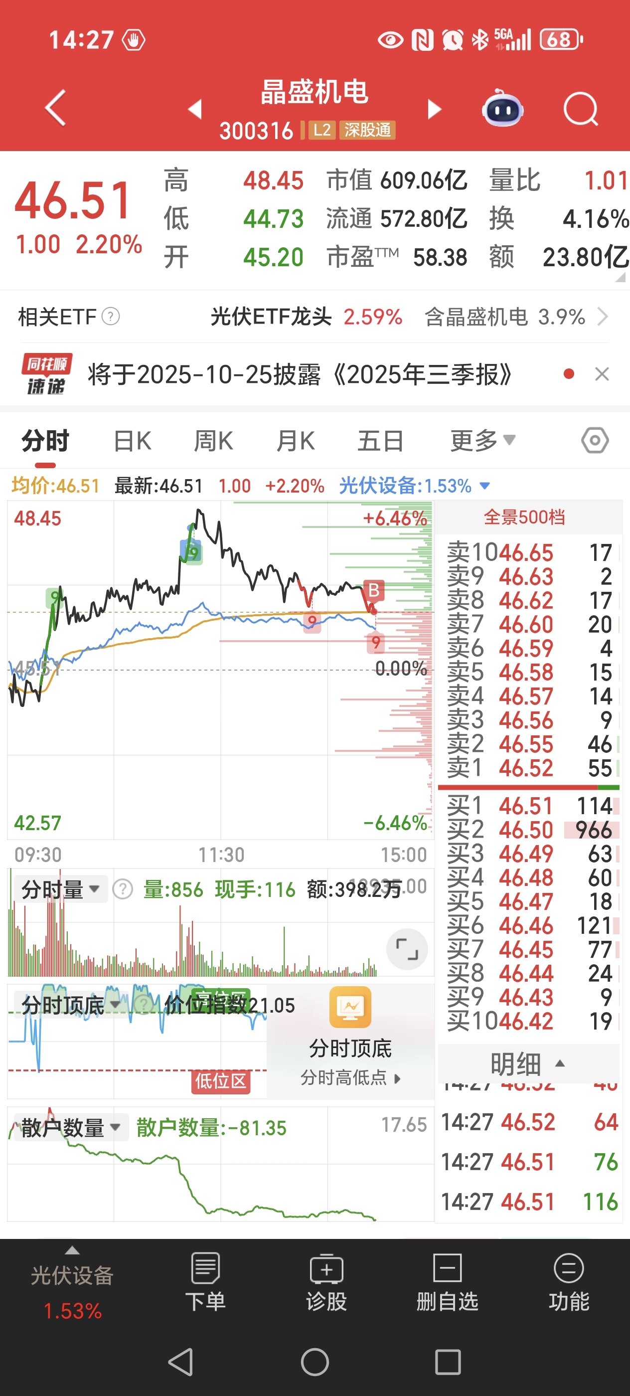 $晶盛机电(SZ300316)$ 做个小t均线接回来