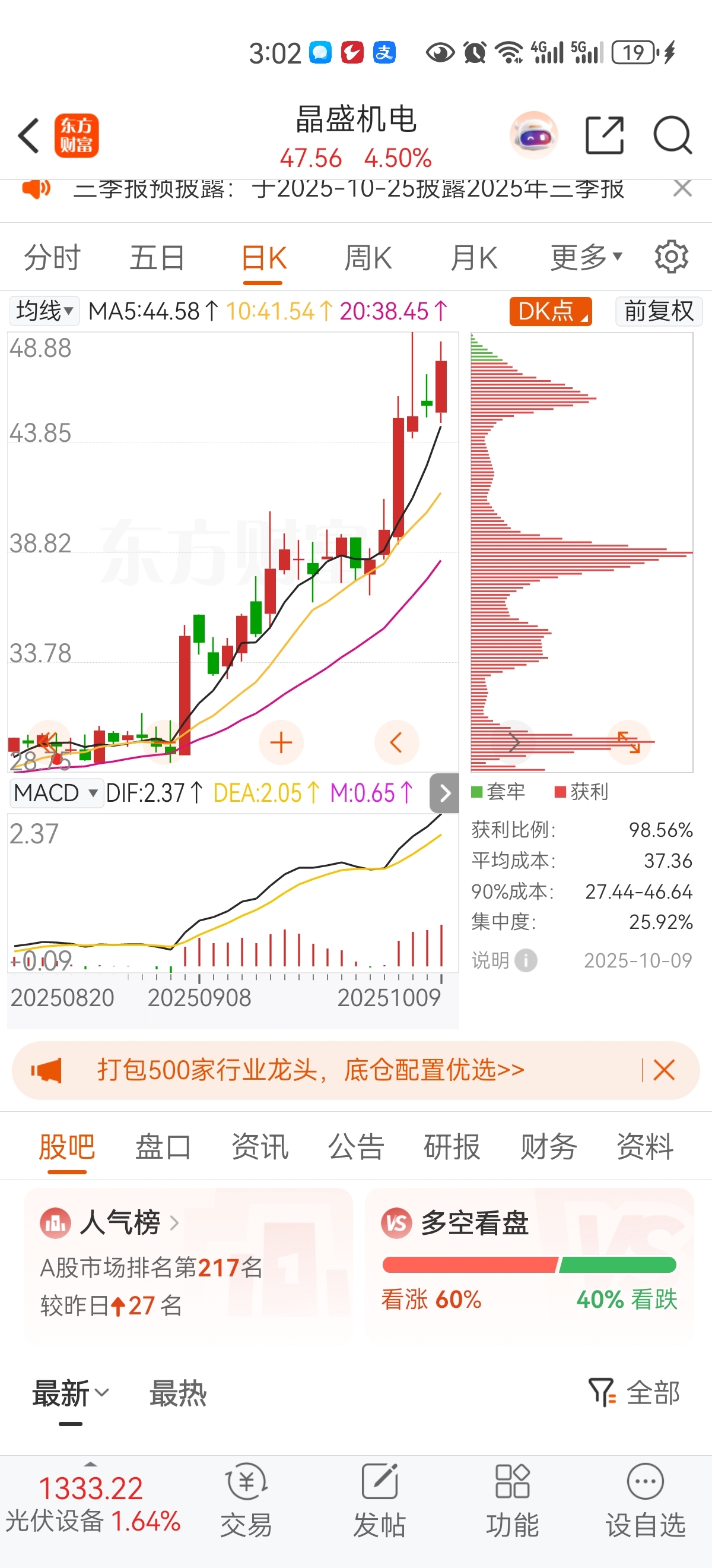 $晶盛机电(SZ300316)$ 主力38块附件筹码一直没动,现在筑基46附近的筹码。46*1.2以上才有机会出得了货