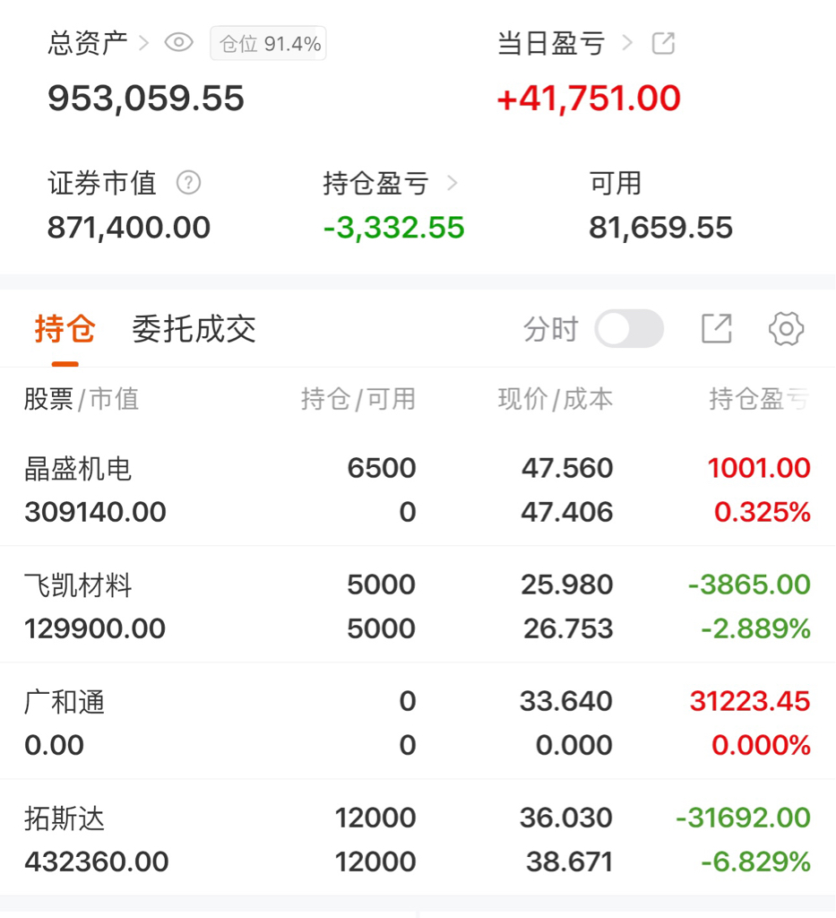 10月9号50w实盘记录新开下车了拓斯达,飞凯材料继续持有风险提示,业绩仅供参考