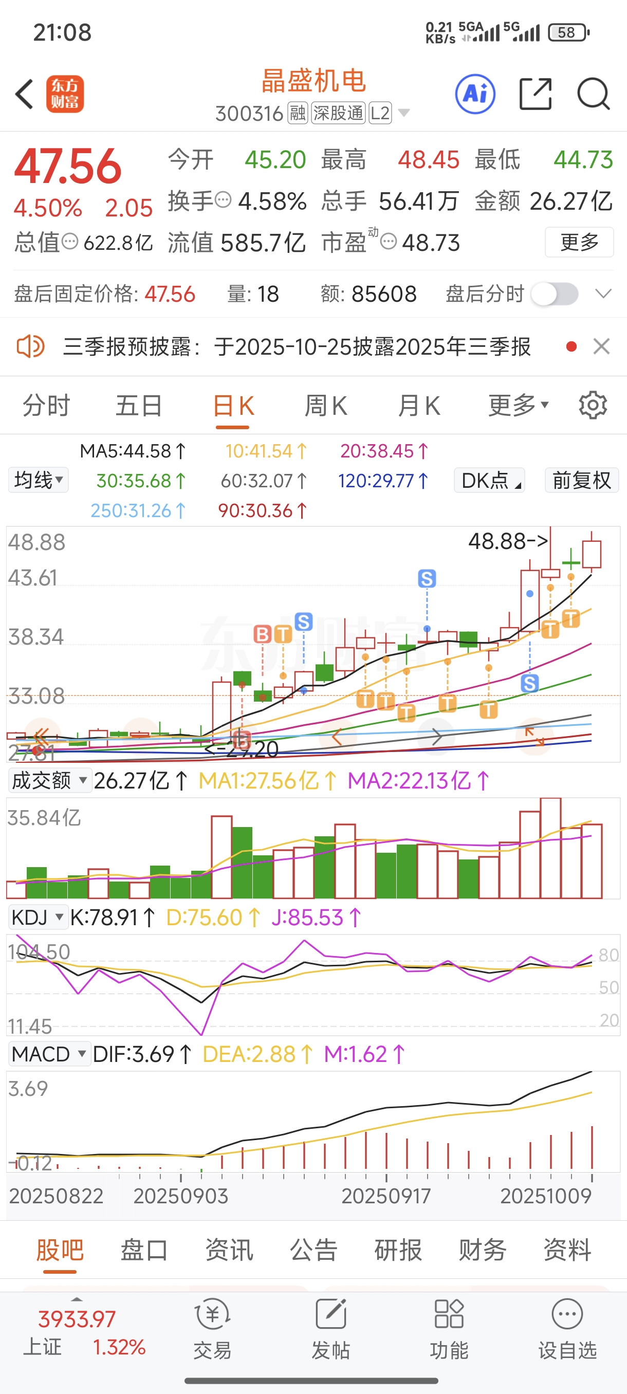 $晶盛机电(SZ300316)$ 大涨第二天就果断建仓了 后面一路做T现在成本不高 还能抗一下
