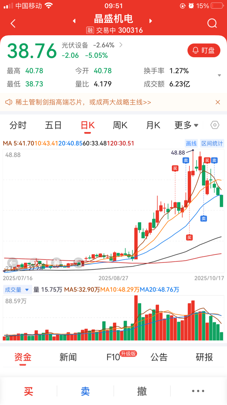 $晶盛机电(SZ300316)$ 虽然看好但没必要格局破位了就要跑