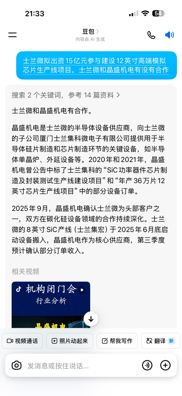 $晶盛机电(SZ300316)$ 士兰微拟出资15亿元参与建设12英寸高端模拟芯片生产线项目。