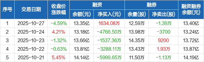 晶盛机电:融资净买入1634.08万元,融资余额13.35亿元(10-27)