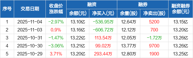 晶盛机电:融资净偿还536.95万元,融资余额13.1亿元(11-04)