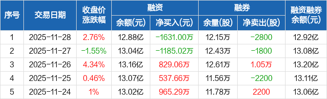 晶盛机电:融资净偿还1631万元,融资余额12.88亿元(11-28)