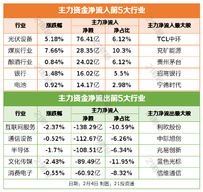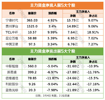 2月4日,市场探底回升,沪指重返4100点,深成指翻红,此前一度跌超1%,创业板指午后跌幅收窄。截至收盘,沪指涨0.85%,深成指涨0.21%,创业板指跌0.4%。沪深两市成交额2.48万亿,较上一个交易日缩量633亿。