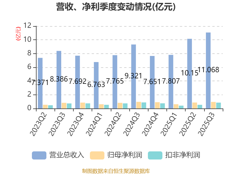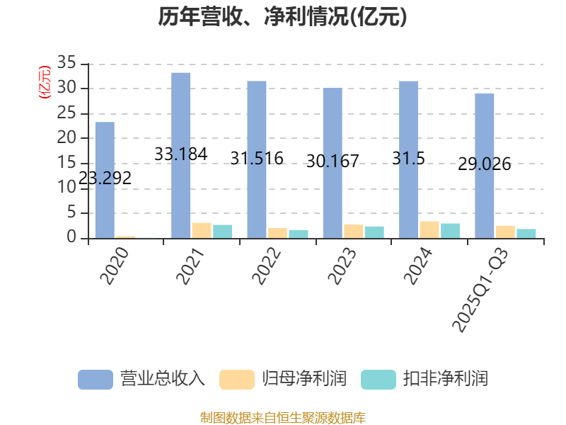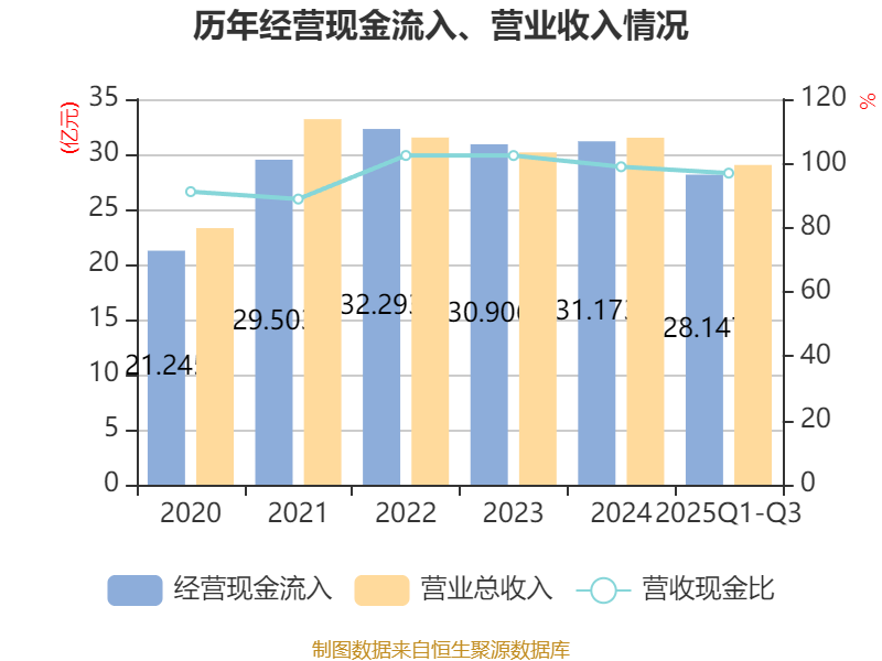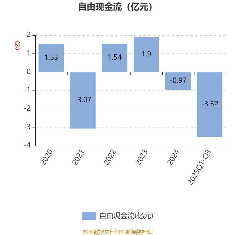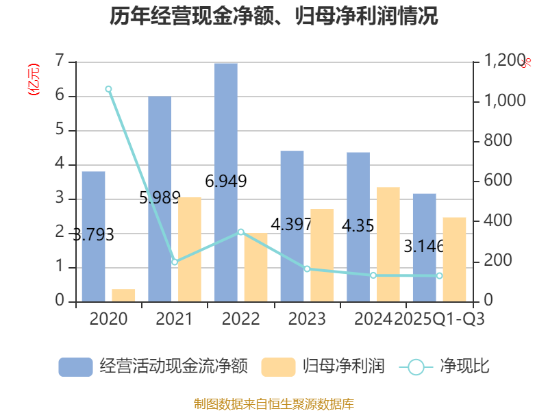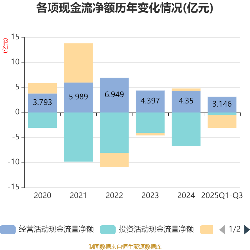 2025年前三季度,公司经营活动现金流净额为3.15亿元,同比增长46.1%;筹资活动现金流净额-2.52亿元,同比减少3.45亿元;投资活动现金流净额-5642.98万元,上年同期为-4.47亿元。