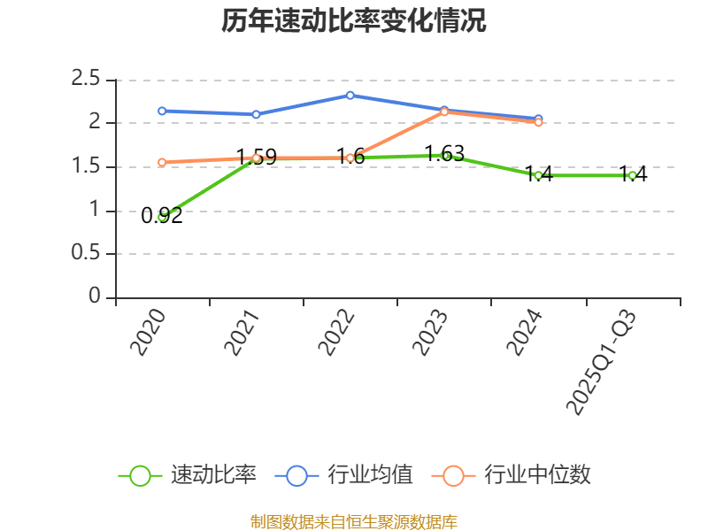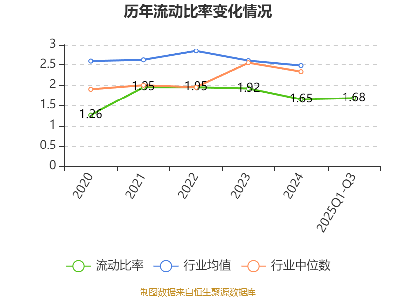 2025年前三季度,公司流动比率为1.68,速动比率为1.4。