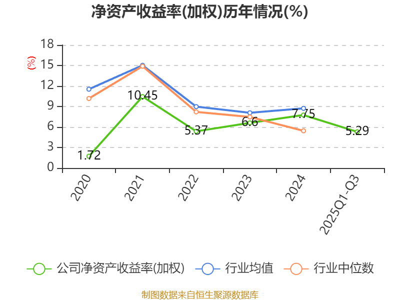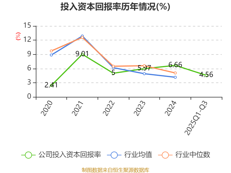 盈利能力方面, 2025年前三季度公司加权平均净资产收益率为5.29%,同比下降0.37个百分点。公司2025年前三季度投入资本回报率为4.56%,较上年同期下降0.28个百分点。
