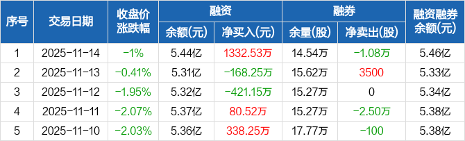 麦捷科技:融资净买入1332.53万元,融资余额5.44亿元(11-14)
