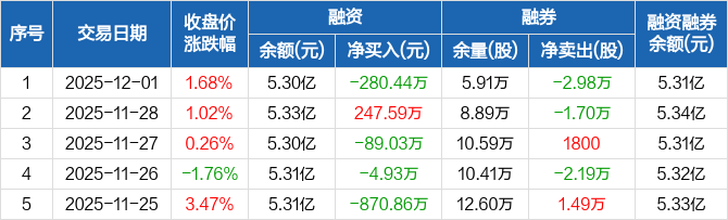 麦捷科技:融资净偿还280.44万元,融资余额5.3亿元(12-01)