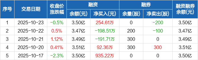 海达股份:融资净买入254.61万元,融资余额3.5亿元(10-23)