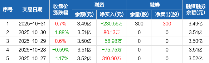海达股份:融资净偿还230.56万元,融资余额3.49亿元(10-31)