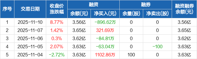 海达股份:融资净偿还896.62万元,融资余额3.56亿元(11-10)