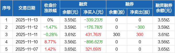 海达股份:融资净偿还339.23万元,融资余额3.55亿元(11-13)