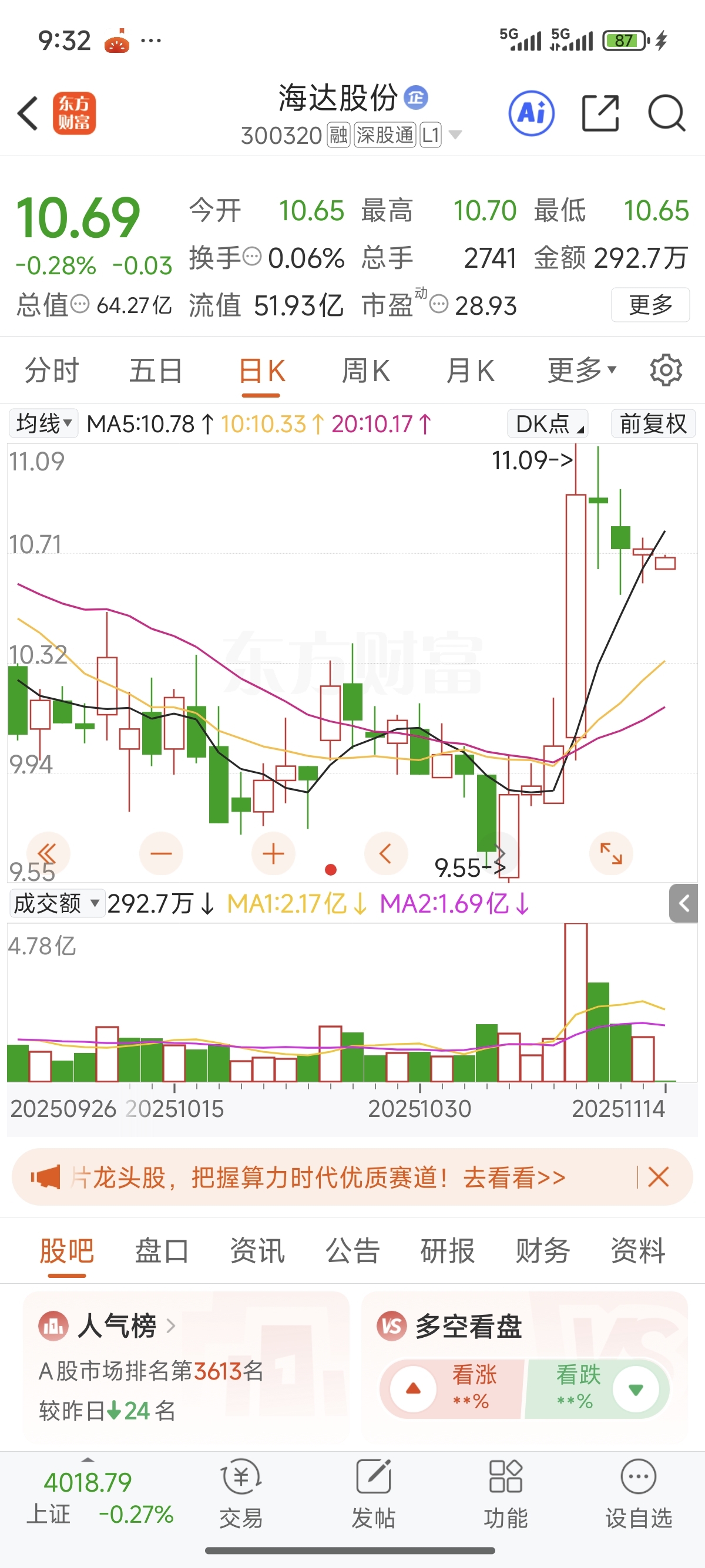 $海达股份(SZ300320)$ 这个走势还在卖的是啥吊吗