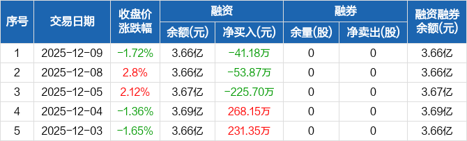 海达股份:连续3日融资净偿还累计320.75万元(12-09)