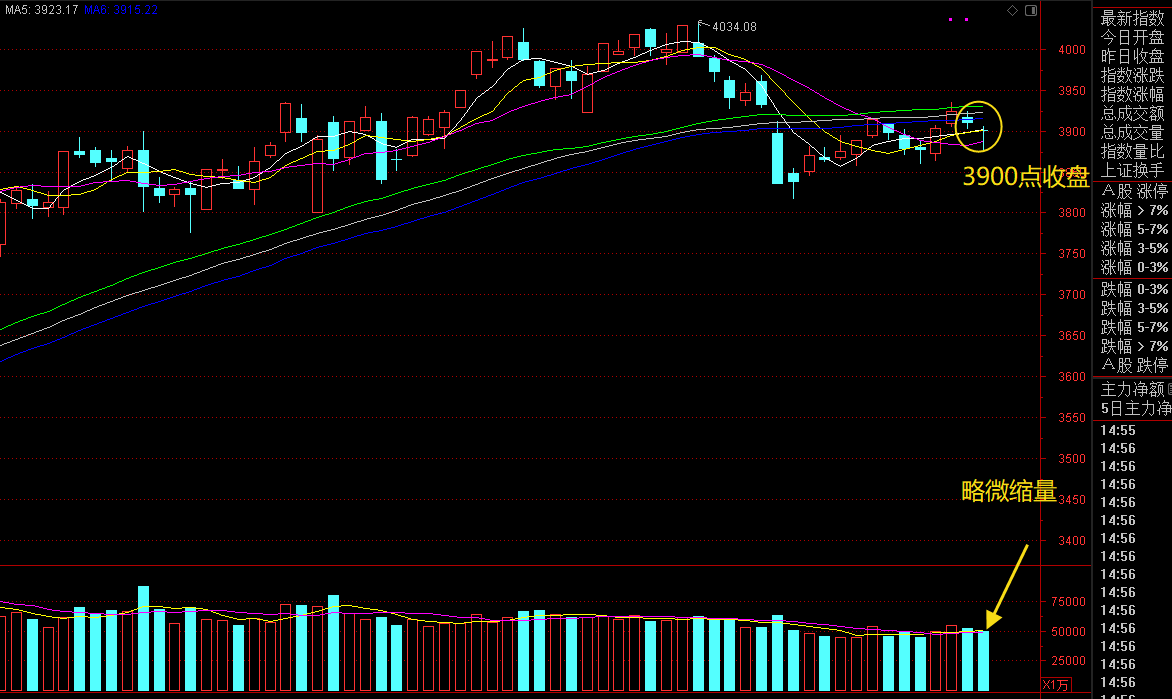 昨天盘前,北哥预判3900点是重要防守点位,最好收出略微缩量的小K线。然后大家看一下周二的收盘,是不是正好3900点,而且微小阴线略微缩量?就是这么准确!